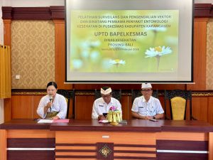 Dinas Kesehatan Kabupaten Karangasem menyelenggarakan Pelatihan Surveilans dan Pengendalian Vektor dan Binatang Pembawa Penyakit Entomologi di Puskesmas Kabupaten Karangasem Tahun 2026. Pelatihan ini diselenggarakan pada tanggal 2 s/d 7 Februari 2026 secara Klasikal/Tatap Muka di UPTD Bapelkesmas Dinas Kesehatan Provinsi Bali Jln. Gumitir No. 135, Biaung Kesiman Kertalangu, Denpasar Timur. Pelatihan ini di buka secara resmi oleh Kepala Dinas Kesehatan Kabupaten Karangasem Bapak dr. I Gusti Bagus Putra Pertama, MM.